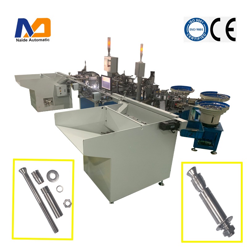 該款不銹鋼后擴底錨栓自動化組裝機是專門為建筑錨栓進行自動化組裝,設備采用多工位轉盤搬運結構,通過振動盤有序上料,運用PLC與觸摸屏操控,實現產品組裝,檢測,良次品區分等工藝。 設備簡單易操作,可以實現1人管理多套設備的理想化車間管理。