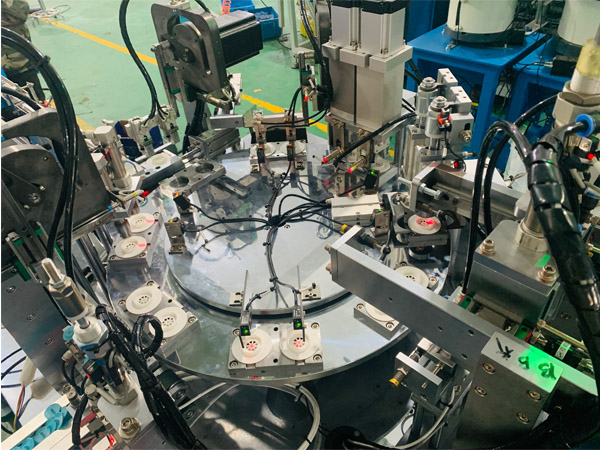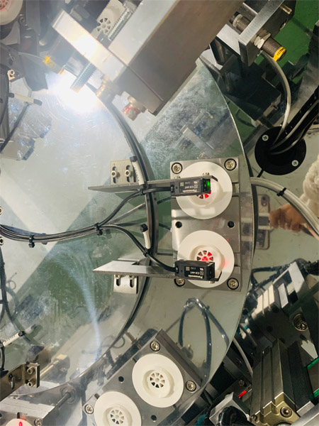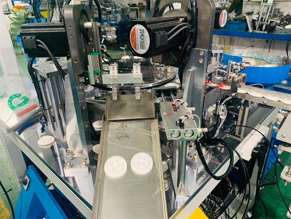 該設備主要是為真空袋的氣閥全自動組裝機,設備采用多工位轉盤搬運結構,通過振動盤有序上料,運用PLC與觸摸屏操控,實現產品組裝,檢測,良次品區分等工藝。 設備簡單易操作,可以實現1人管理多套設備的理想化車間管理。